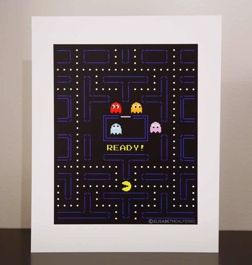 Pac-Man, Poster, vintage, video game, game, nes, nintendo, arcade, art, art print, wall art, geek, retro, illustration, impression digitale