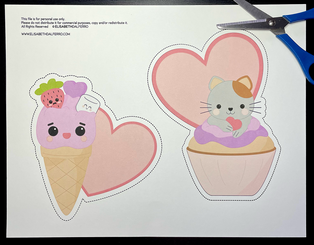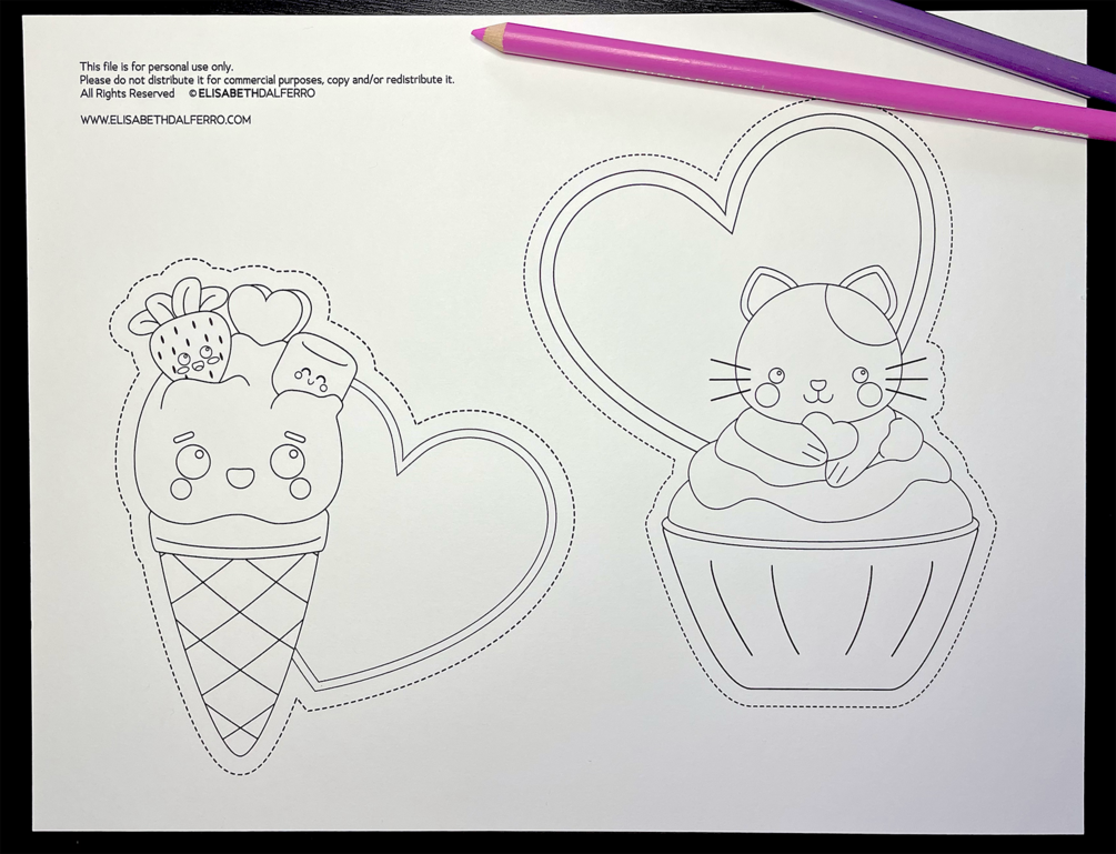 Do you remember the Valentines’ cards that came pre-cut in a notebook and that we gave to everyone around us? Well, I have recreated this memory with a modern kawaii twist.